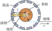 5. 如图所示,在细绳的拉动下,半径为r的卷轴可绕其固定的中心点O在水平面内转动。卷轴上沿半径方向固定着长度为l的细管,管底在O点。细管内有一根原长为