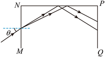 角从MN面射入某长方体透明均匀介质。折射光束在NP面发生全反射。反射光射向PQ面。若