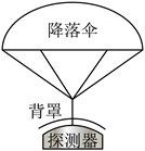 9. 如图所示,探测器及其保护背罩通过弹性轻绳连接降落伞。在接近某行星表面时以的。地球表面重力加速度大小取