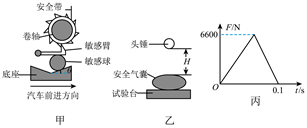 (1)安全带能通过感应车的加速度自动锁定,其原理的简化模型如图甲所示。在水平路面上刹车的过程中,敏感球由于惯性沿底座斜面上滑直到与车达到共同的加速度a,同时顶起敏感臂,使之处于水平状态,并卡住卷轴外齿轮,锁定安全带。此时敏感臂对敏感球的压力大小为