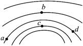 2. 我国古人最早发现了尖端放电现象,并将其用于生产生活,如许多古塔的顶端采用“伞状”金属饰物在雷雨天时保护古塔。雷雨中某时刻,一古塔顶端附近等势线分布如图所示,相邻等势线电势差相等,则a、b、c、d四点中电场强度最大的是( )