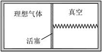 9. 如图,水平放置的密闭绝热汽缸被导热活塞分成左右两部分,左侧封闭一定质量的理想气体,右侧为真空,活塞与汽缸右壁中央用一根轻质弹簧水平连接。汽缸内壁光滑且水平长度大于弹簧自然长度,弹簧的形变始终在弹性限度内且体积忽略不计。活塞初始时静止在汽缸正中间,后因活塞密封不严发生缓慢移动,活塞重新静止后( )