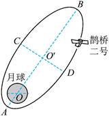 8. 2024年3月20日,鹊桥二号中继星成功发射升空,为嫦娥六号在月球背面的探月任务提供地月间中继通讯。鹊桥二号采用周期为24h的环月椭圆冻结轨道(如图),近月点A距月心约为2.0 × 103km,远月点B距月心约为1.8 × 104km,CD为椭圆轨道的短轴,下列说法正确的是( )