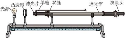 11. 某同学通过双缝干涉实验测量单色光的波长,实验装置如图1所示,其中测量头包括毛玻璃、游标尺、分划板、手轮、目镜等。