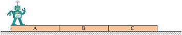 16. 如图,三块厚度相同、质量相等的木板A、B、C(上表面均粗糙)并排静止在光滑水平面上,尺寸不计的智能机器人静止于A木板左端。已知三块木板质量均为
