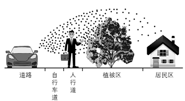 11. 在优先考虑降低颗粒物对居民区影响的同时,为尽量减少其对行人的影响,该都市从人行道到居民区绿化植被配置合理的是( )
