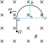 是半径为R的半圆弧,b为圆弧的中点,直线段Oa长为R且垂直于直径ac。该导线在纸面内绕O点逆时针转动,导线始终在垂直纸面向里的匀强磁场中。则O、a、b、c各点电势关系为( )