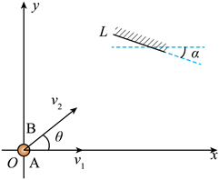 10. 如图,光滑水平面内建立直角坐标系xOy.A、B两小球同时从O点出发,A球速度大小为v1,方向沿x轴正方向,B球速度大小为v2 = 2m/s、方向与x轴正方向夹角为θ。坐标系第一象限中有一个挡板L,与x轴夹角为α。B球与挡板L发生碰撞,碰后B球速度大小变为1m/s,碰撞前后B球的速度方向与挡板L法线的夹角相同,且分别位于法线两侧。不计碰撞时间和空气阻力,若A、B两小球能相遇,下列说法正确的是( )