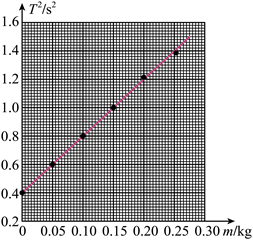 (4)依次增加砝码质量m,测出对应的周期T,实验数据如下表所示,在图中绘制T2—m关系图线______;