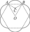 14. 铁艺花窗是园林设计中常见的装饰元素.如图是一个花瓣造型的花窗示意图,由六条等弧连接而成,六条弧所对应的弦构成一个正六边形,中心为点O,