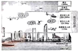 14. 以无人机为支撑的新型低空经济,包含物流运输、即时配送、旅游观光(如图)等领域,应用广泛,前景广阔。深圳市大力发展低空经济产业的优势有( )