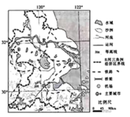 18. 区域经济发展受多种因素影响。长江三角洲地区是中国经济发展最活跃、开放程度最高、创新能力最强的区域之一,在国家现代化建设大局和全方位开放格局中具有举足轻重的战略地位。读图分析回答下列问题。