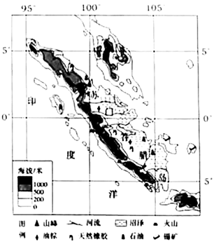 爱好地理的小明从网上查到了一幅苏门答腊岛及附近区域略图。完成下面小题。