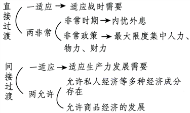 (1)根据材料一并结合所学知识,指出“间接过渡”代表的经济政策的名称,并分析其“两允许”的成效。