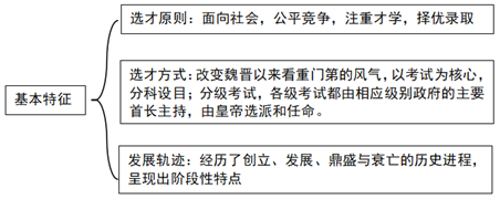 (2)制度:科举制度;意义:加强了皇帝在选官和用人上的权力;扩大了官吏选拔的范围,使有才学的人能够由此参政;促进了社会阶层的流动,同时也推动了教育的发展。