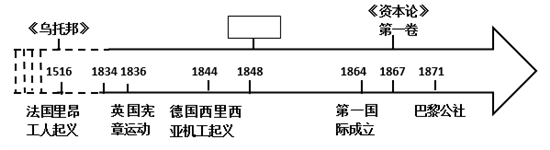 21. 下图是“马克思主义的诞生和传播”的时空坐标,其中“口”处应是( )