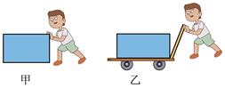 A. 甲图:水平用力推箱子,当箱子没有被推动时,推力小于摩擦力