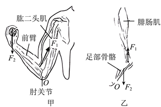 B. 图甲:手托重物时,肱二头肌对前臂的牵引力是阻力