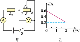 为定值电阻。闭合开关,将滑动变阻器R的滑片P从a端移到b端的过程中,其电流I与电压U的关系图像如图乙所示,则电源电压为______V,滑动变阻器R的最大阻值为______Ω,电阻