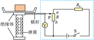(3)当滑片P位于滑动变阻器的中点时,电压表的示数为多少(结果保留一位小数)?此时对应的物体质量为多少?