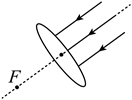 5. 据晋代张华的《博物志》记载:“削冰令圆,举以向日,以艾承其影,则得火。”这种利用冰透镜向日取火的方法,体现了我国古代劳动人民的智慧。如图所示,若把冰块制成的凸透镜正对着太阳,将太阳光看成平行光,冰透镜的焦点为F,请在图中完成光路。