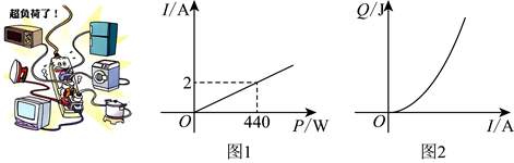 10. 把多个用电器连接在同一个插线板上,同时使用一段时间后,插线板的电源线会明显发热,存在安全隐患.数学兴趣小组对这种现象进行研究,得到时长一定时,插线板电源线中的电流I与使用电器的总功率P的函数图象(如图1),插线板电源线产生的热量Q与I的函数图象(如图2).下列结论中错误的是( )