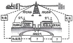 16.2024年4月30日,全球最大的压缩空气储能项目在我国并网发电,工作原理如图。在用电低谷时段利用电网多余电能驱动压缩机压缩空气,使空气_________增大(填能量形式);在用电高峰时段高压空气被释放,膨胀对外_________,使膨胀机转动,将内能转化为_________,带动发电机产生电能输送至电网。