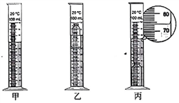如图甲,在量筒中注入适量的水,读出量筒的示数