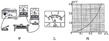(2)移动滑动变阻器的滑片至最_________端后闭合开关,使电路中的电流在开始测量时最小。向另一端移动滑片,观察到小灯泡在电压达到0.42V时开始发光,此时电流表示数如图乙,读数为_________A。