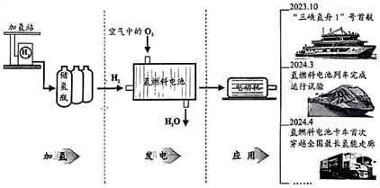 23.(8分)据统计,每燃烧1kg燃油约排放3.3kg二氧化碳。为实现碳达峰、碳中和的目标,氢能作为一种绿色低碳的清洁能源在我国交通领域的应用场景不断扩大,使用氢燃料电池的交通工具不断丰富,其应用流程如下。