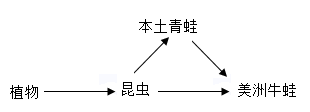 (3)从题干中找出美洲牛蛙成为典型入侵动物的一个自身原因________。当美洲牛蛙入侵农田生态系统后,可形成如图所示的食物网,其中美洲牛蛙与本土青蛙的关系有________。