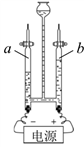 ①在电解器玻璃管中加满水。通电,观察到玻璃管中有气泡冒出,一段时间后,a、b管内气体体积比约为______。