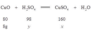 解:设氧化铜的质量为m,生成硫酸铜的质量为x,硫酸的质量为y。