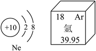 (1)氖的原子结构示意图和氩在元素周期表中的部分信息分别如下图所示。