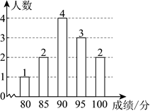 13.学校为了解学生的安全防范意识,随机抽取了12名学生进行相关知识测试,将测试成绩整理得到如图所示的条形统计图,则这12名学生测试成绩的中位数是 .(单位:分)