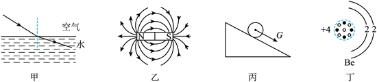 D. 丁图是Be原子的结构模型,其原子核由质子和中子构成,中子带正电
