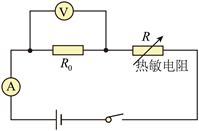 9. 如图电路中,电源电压为6V恒定不变,R为热敏电阻,其阻值随温度变化关系如下表所示。定值电阻