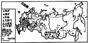 2023年俄罗斯通过升级基础设施等措施,吸引中国投资者共同开发西伯利亚地区。读“俄罗斯人口密度及部分资源分布图”,完成下面小题。