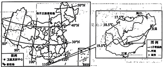 (2)中国文昌航天发射场位于“中国四大卫星发射基地分布图”中的____(填字母),该省简称____。航天器发射当天,文昌航天发射场的天气状况为____。与其他三个基地相比,文昌航天发射场有哪些突出优势____?