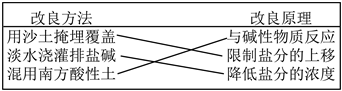治理:结合所学知识将下列苏打盐碱地土壤改良方法与改良原理连线______。