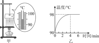 (2)加热4分钟后,水开始沸腾,图乙是根据实验数据绘制的图像,分析图像可得:水沸腾过程中,吸收热量,温度_____________;