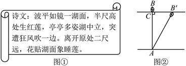 13.图①中有一首古算诗,根据诗中的描述可以计算出红莲所在位置的湖水深度,其示意图如图②,其中