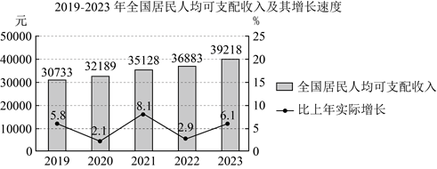 年全国居民人均可支配收入及其增长速度情况如图所示.