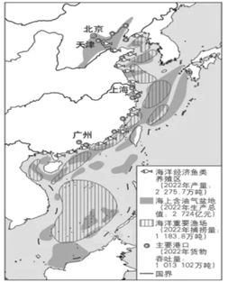 材料三 中国当代海洋资源开发及成就示意图(部分)