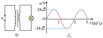 5. 如图甲所示,理想变压器原线圈接在正弦式交流电源上,输入电压u随时间t变化的图像如图乙所示,副线圈接规格为“6V,3W”的灯泡。若灯泡正常发光,下列说法正确的是( )