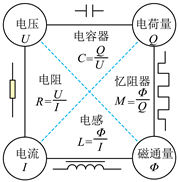 14. 电荷量Q、电压U、电流I和磁通量Φ是电磁学中重要的物理量,其中特定的两个物理量之比可用来描述电容器、电阻、电感三种电磁学元件的属性,如图所示。类似地,上世纪七十年代有科学家预言Φ和Q之比可能也是一种电磁学元件的属性,并将此元件命名为“忆阻器”,近年来实验室已研制出了多种类型的“忆阻器”。由于“忆阻器”对电阻的记忆特性,其在信息存储、人工智能等领域具有广阔的应用前景。下列说法错误的是( )