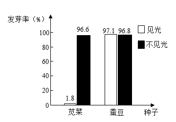19. 小刚通过实验探究光照对种子萌发的影响(其他环境条件均适宜),根据实验结果绘制了统计图,分析可知( )