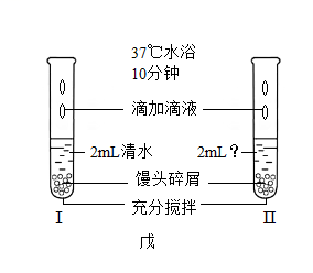 (5)图戊:探究馒头在口腔中的变化时,两支试管如图处理后,Ⅰ号试管变蓝,Ⅱ号试管不变蓝,原因是Ⅱ号试管中加入了2mL______。