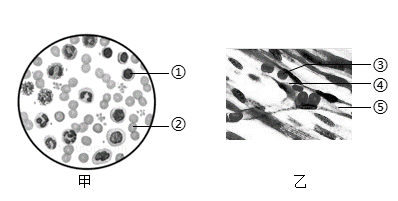 A. 甲中①体积最大,数量最多 B. 甲中②呈红色,都有细胞核