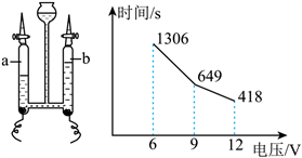5. 晓佳为探究不同电压对电解水速率的影响,用如图装置进行多次实验,并记录不同电压下生成